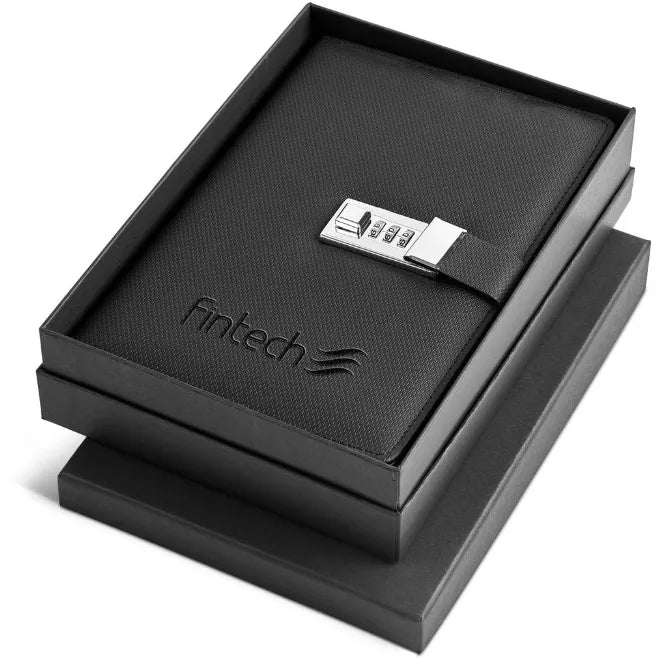 Keep your notes secure with the Alex Varga Chapman Code-Lock Hard Cover Notebook, featuring a convenient code-lock system.